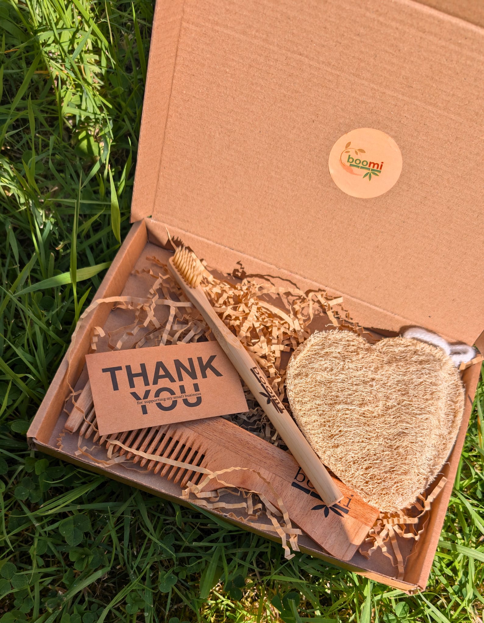 Our sustainable personal care set includes a bamboo toothbrush with natural fiber bristles for gentle, effective cleaning, a neem wood comb for promoting healthy hair and scalp with natural antibacterial properties, and a *natural loofah* made from ridge gourd for gentle exfoliation and smoother skin. All products are biodegradable, eco-friendly, and perfect for a sustainable lifestyle.